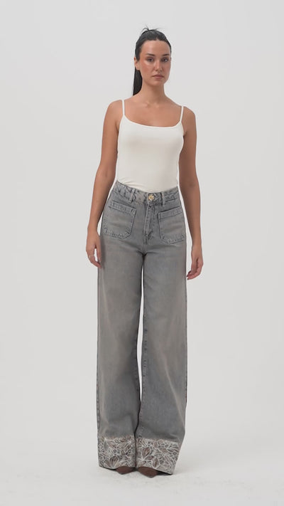 Kadın Kot Rengi 4s6-65 Wide Leg Fit Paça Dantel Detaylı Özel Tasarım denim Jean