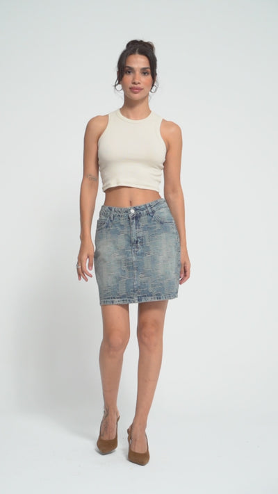 Kadın Kot Rengi 4w5-32 Özel Kumaş Mini Boy Tasarım Denim Etek