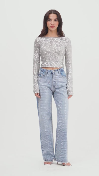 Kadın Kot Rengi Doris T34S527 Parlak Taşlı Tasarım Straight Fit Denim