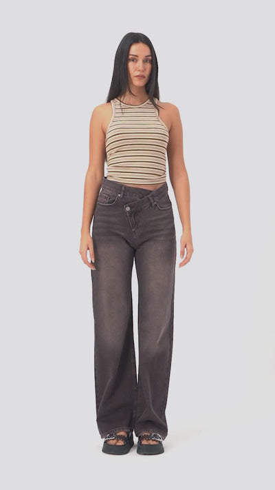 Kadın Koyu Kahve 2s6-16 Straight Fit Kemer Detaylı Özel Tasarım Denim Jean
