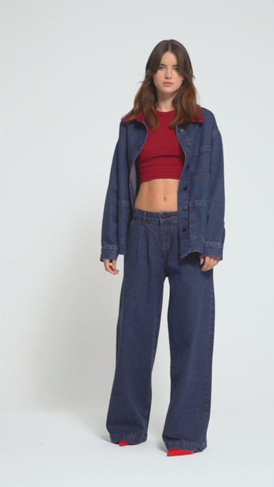 Kadın Koyu Mavi Renk 1w5-149 Oversize Yaka Detaylı Bol Kesim Özel Tasarım Denim Ceket