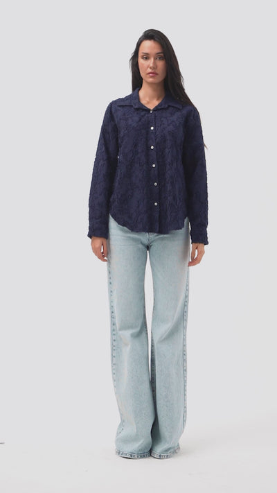 Kadın Lacivert s6-56 Özel Kumaş Bol Kesim Elastan Gömlek