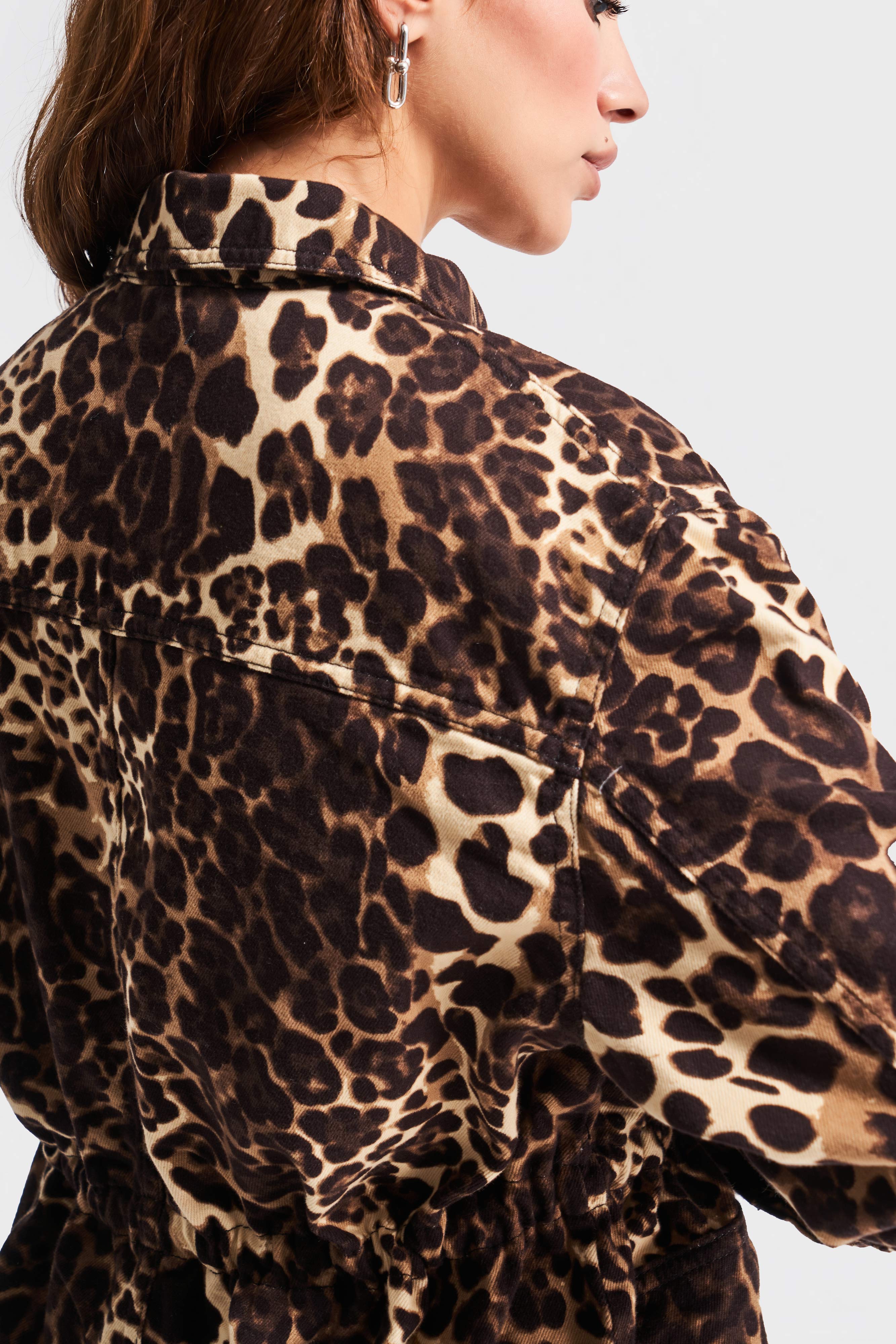 Kadın Leopar Renk Fermuarlı Tasarım Denim Trençkot