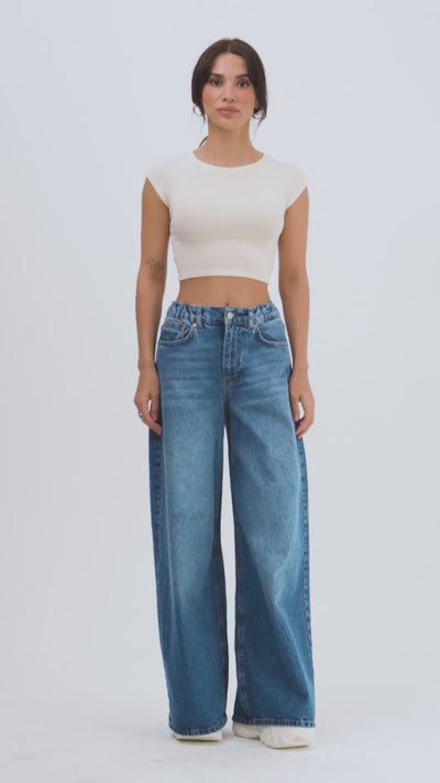 Kadın Mavi Renk 2S5-4 Palazzo Fit Beli Lastliki %100 Koton Denim Jean