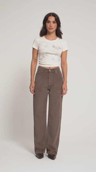 Kadın Pastel Kahve Doris 29w5-140 Straight Fit Yüksek Bel Kalın Fitilli Velvet Kadife Kumaş Pantolon
