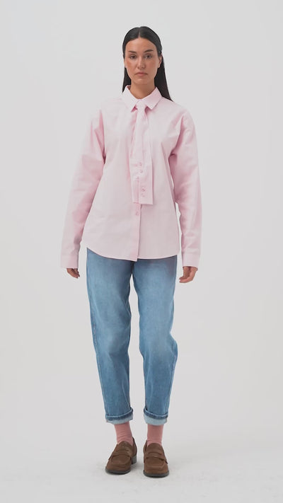 Kadın Pembe Oversize Kravat Detaylı Özel Tasarım Bol Kesim Gömlek