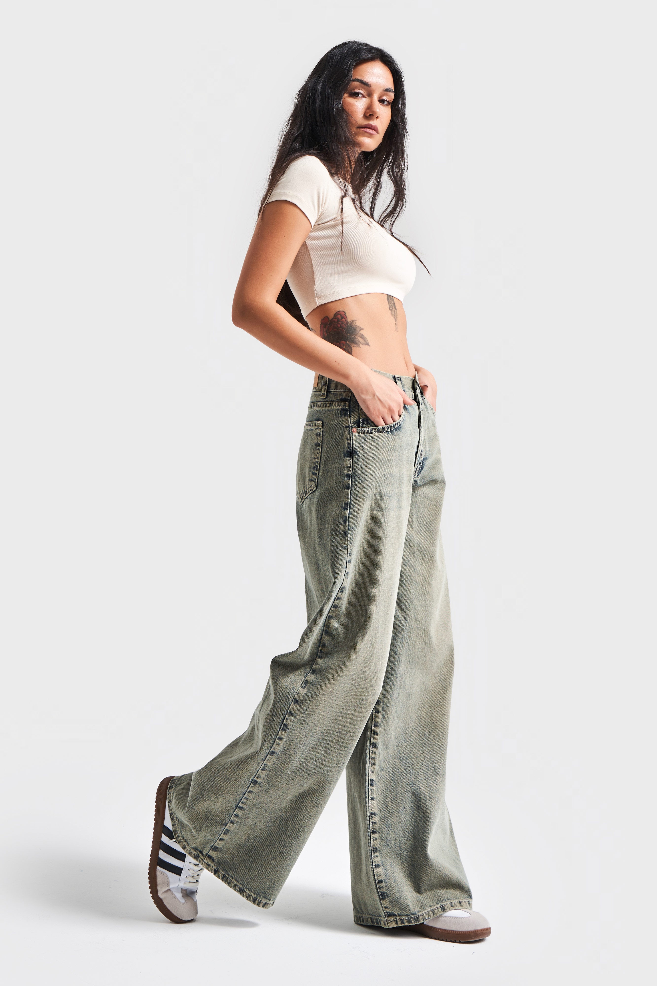 Kadın S.Kot Rengi Hera 5S4 Palazzo Fit %100 Koton Orta Bel Denim Jean