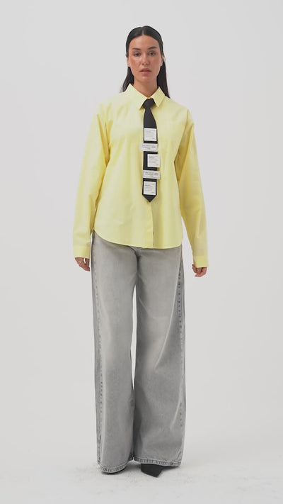 Kadın Sarı Renk Oversize Kravatlı Özel Tasarım Bol Kesim Gömlek