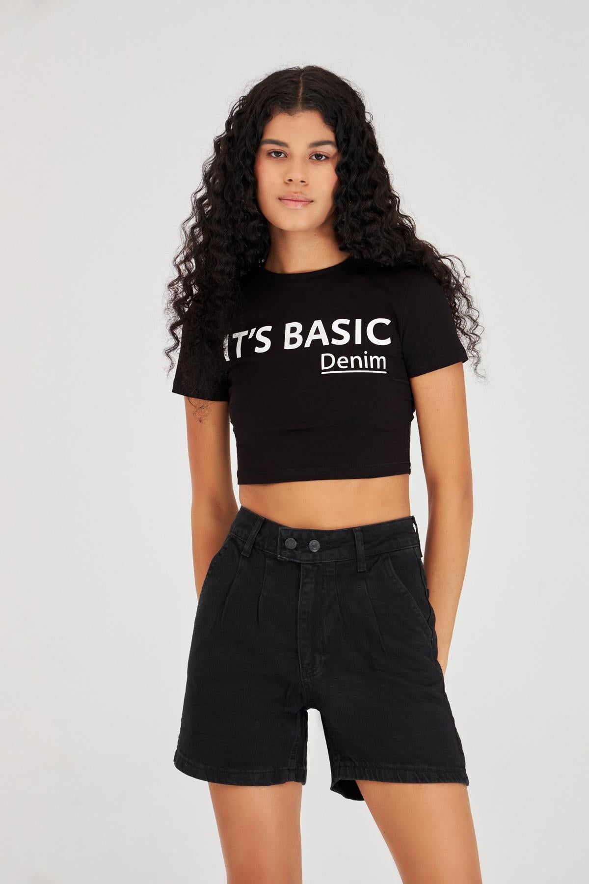 Kadın Siyah Black Od Renk Önü Pileli Çift Düğmeli Yüksek Bel Şort