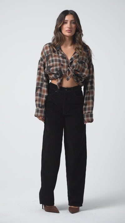 Kadın Siyah Renk Cindy 26w5-1 Skater Fit Kalın Fitilli Kadife Velvet Kumaş Pantolon