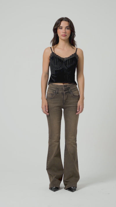 Kadın Siyah Renk İnce Askılı Pedli Dantel Detaylı Tasarım Büstiyer Bluz