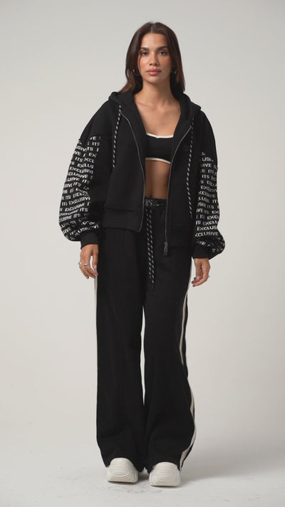 Kadın Siyah Renk w5-1 Örme Kumaş Büstiyer Polar ve Alt Eşofman 3'lü Tasarım Takım