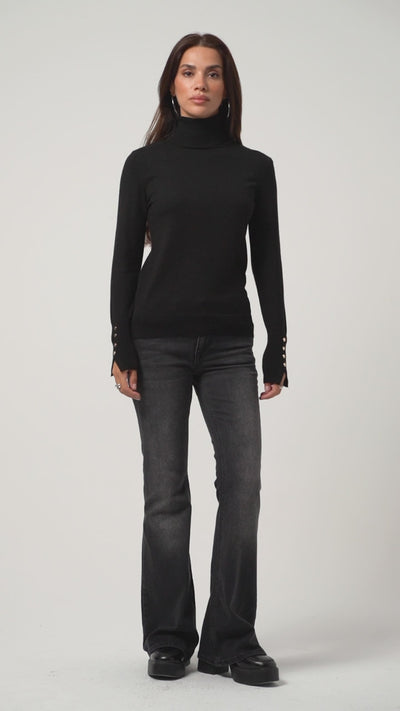 Kadın Siyah Renk w5-1 Yumuşak İnce Triko Kumaş Balıkçı Yaka Triko Kazak