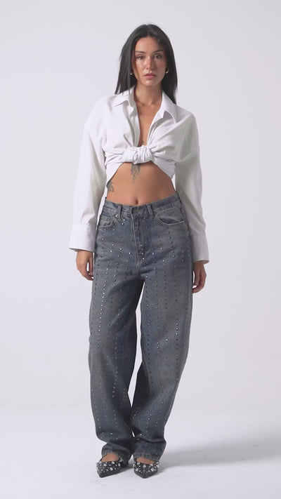 Kadın T.Kot 2w48 Rengi Taş Detaylı Skater Fit Tasarım Denim
