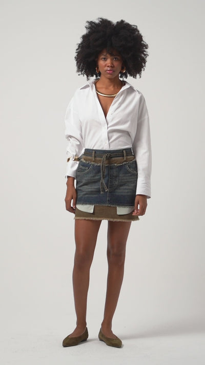 Kadın T.Kot Rengi 2w5-8 Çift Denim Parçalı Özel Tasarım Mini Denim Etek