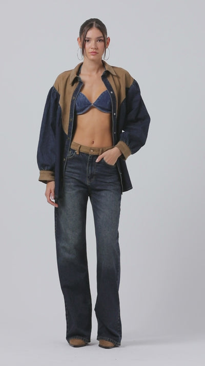Kadın T.Kot Rengi 2w5-8 Mid Rise Wide Leg Fit Süet Kemer Detaylı İç Boy 83cm %100 Koton Denim Jean