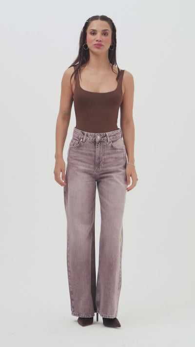 Kadın Taş Kot Rengi Olea 4s6-173 Wide Leg Fit %100 Koton Denim Jean
