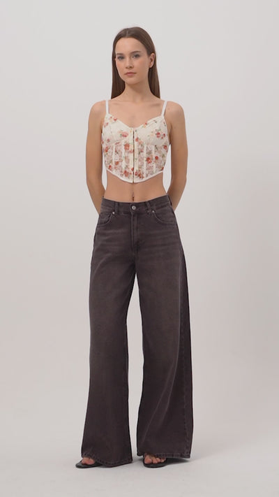 Kadın Taşlanmış Kahve Renk 4w5-16 Palazzo Fit %100 Koton İç Boy 80cm Denim Jean