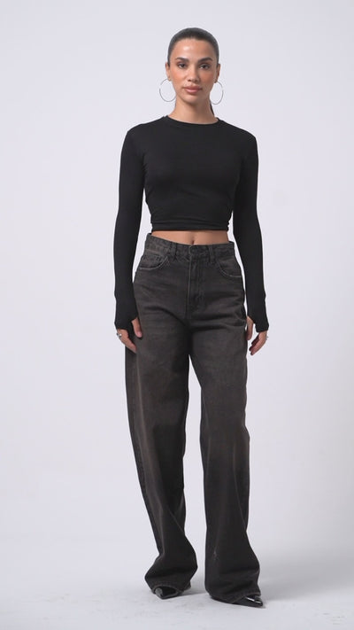 Kadın Taşlanmış Kahverengi 17w5-62 Süper Yüksek Bel Skater Fit Bol Kesim %100 Koton Denim Jean