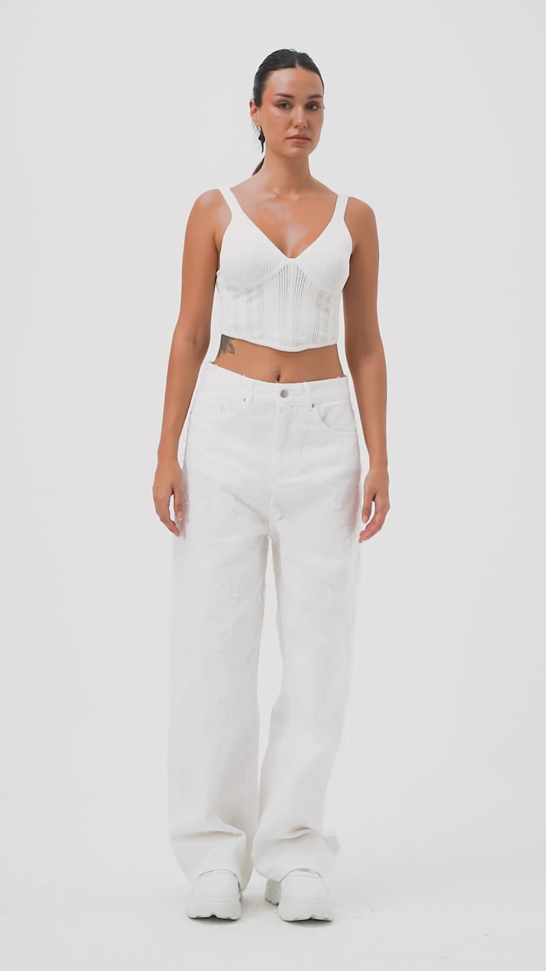 Kadın Beyaz Renk w5-2 Straight Kargo Fit Simli Özel Kumaş Tasarım Denim Jean