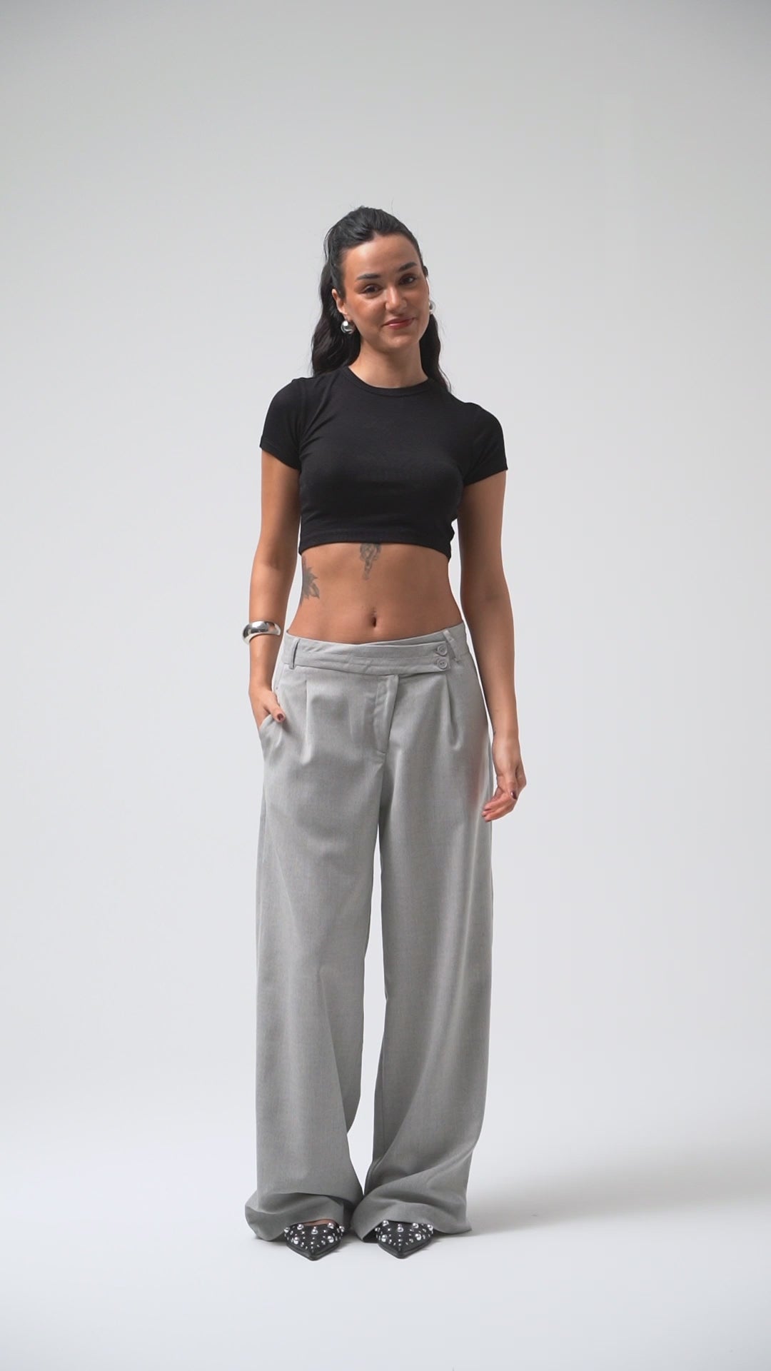 Женские брюки-палаццо серого цвета свободного кроя из ткани с дизайнерским дизайном