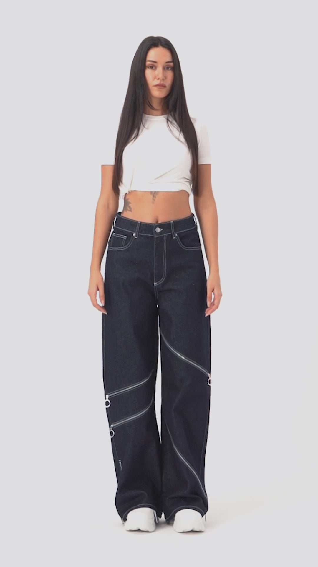 Kadın İndigo Selvedge 7s6-50 Süper Baggy Fit Fermuar Detaylı Özel Tasarım Denim Jean