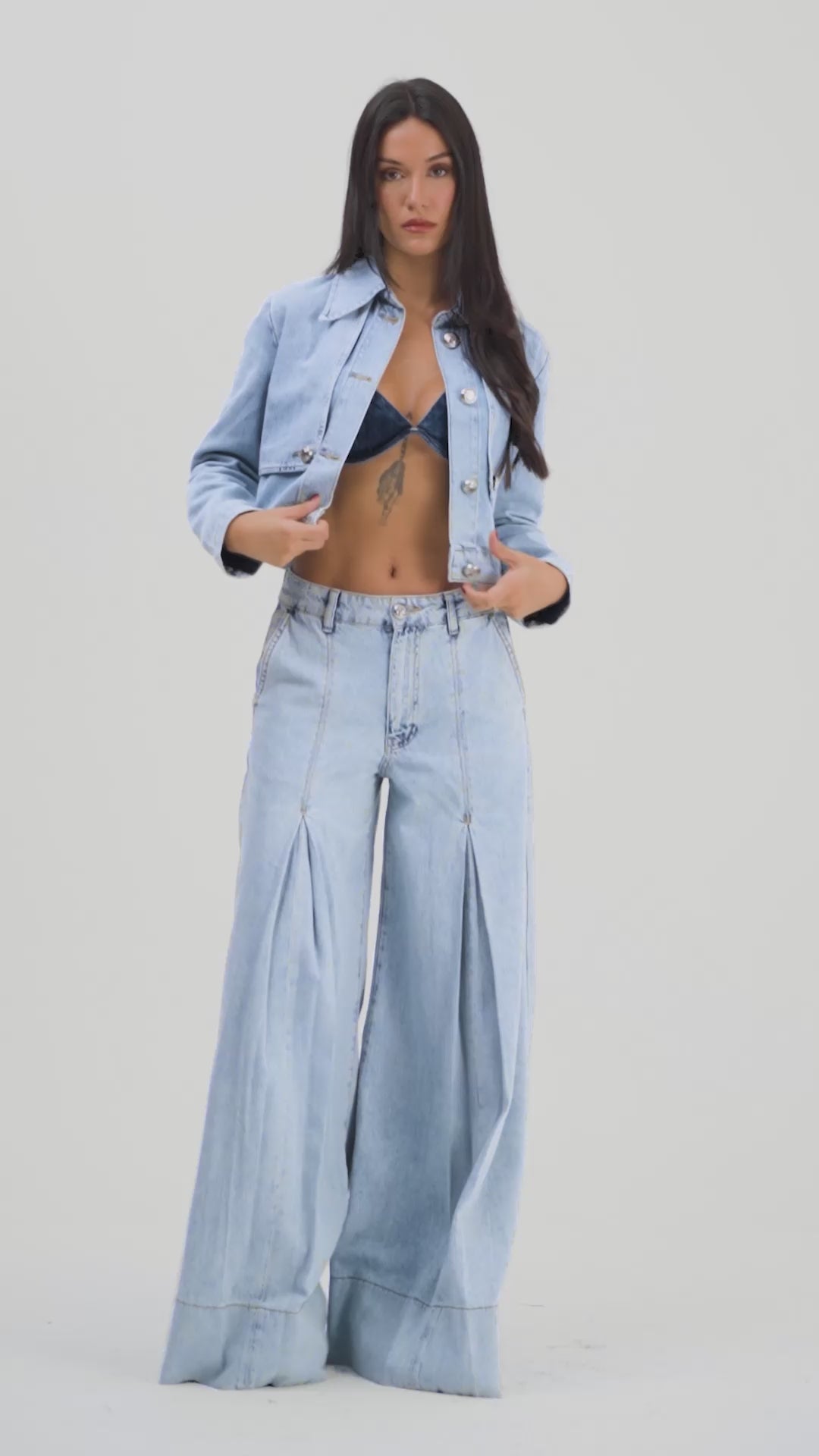 Kadın Füme Renk T-1w5-1 Crop Fit Düğmeli Özel Tasarım Denim Ceket