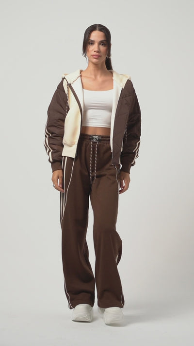 Kadın Bej Kahve Renk w5-16 Örme Kumaş Polar ve Eşofman 2'li Tasarım Kombin Takım