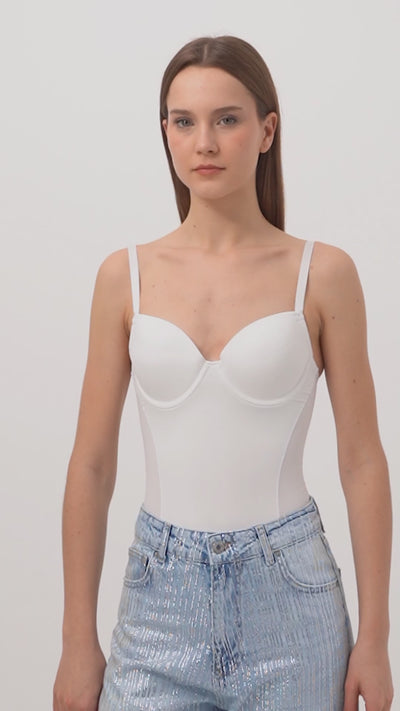 Kadın Beyaz w5 Çıtçıtlı Toparlayıcı Dantel Detaylı Destekli Cup Tasarım Askılı Body