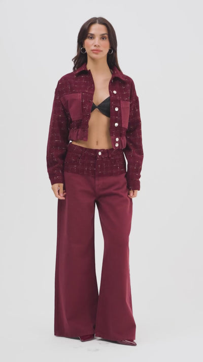 Kadın Bordo 6s6-35 Palazzo Fit Çift Parça Kumaş Özel Tasarım Denim Jean
