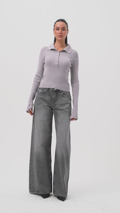 Kadın Gri Renk w5-12 Polo Yaka Viskon Esnek Kumaş Triko