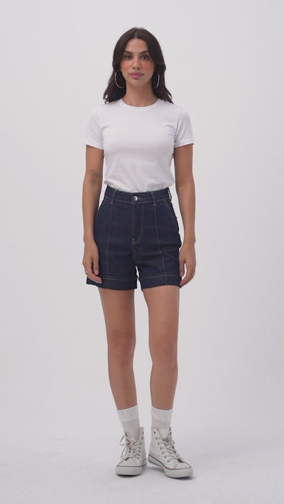 Kadın İndigo Selvedge 7s6-50 Straight Fit Relax Denim Şort