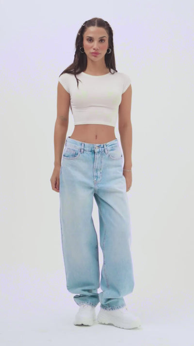 Kadın Ice Kot Rengi Cindy 4s6-3 Skater Fit Bol Kesim %100 Koton Denim Jean