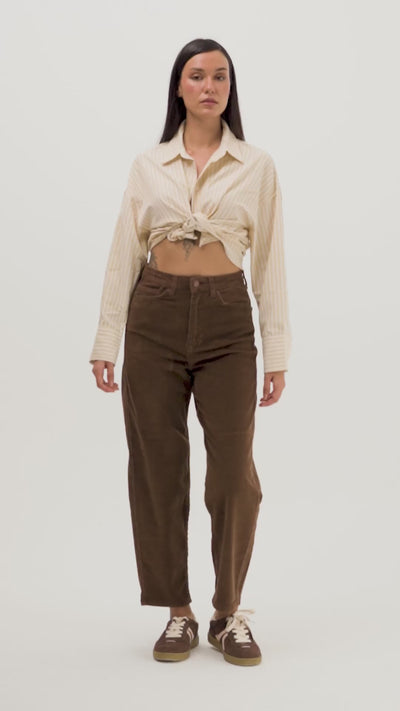 Kadın Kahve Renk 26w5-42 Relax Fit Elastan Kumaş Velvet Kadife Kumaş Pantolon