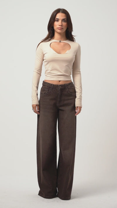 Kadın Kahverengi 2w5-16 LYL36 Palazzo Fit Esnek Elastan Kumaş Denim Jean