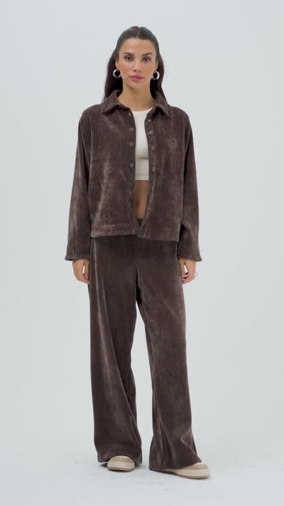 Kadın Kahverengi w5-16 Oversize Velvet Kadife Kumaş Ceket