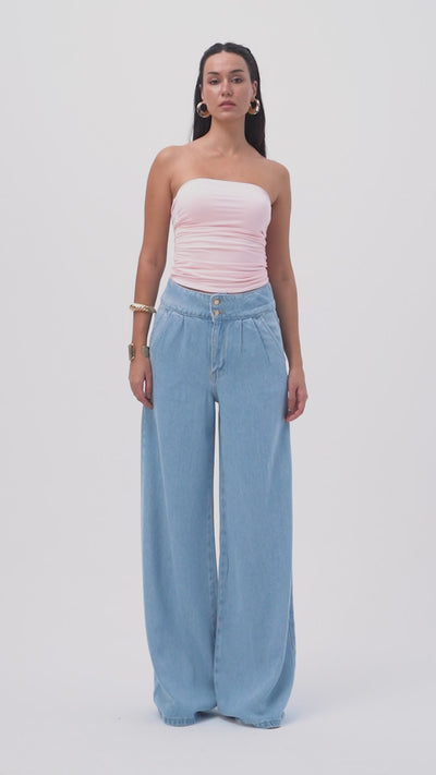 Kadın Mavi 1s6-3 Süper Palazzo Fit Viskon Özel Kumaş Dökümlü Denim Jean