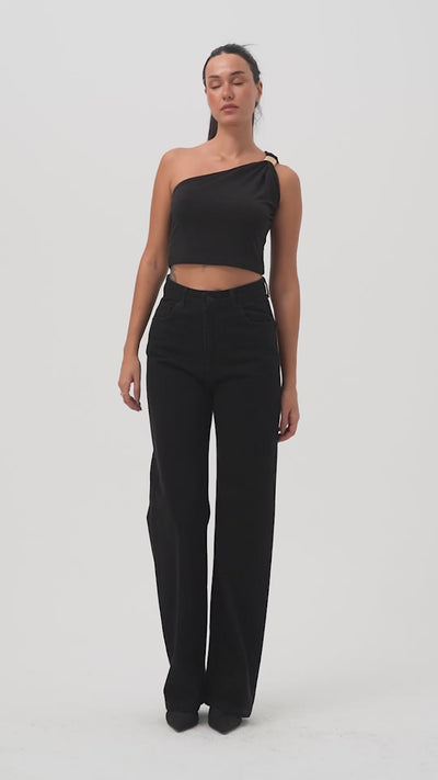 Женские джинсы Doris 1S5-1 прямого кроя с высокой талией, чёрного цвета, 100% хлопок, деним