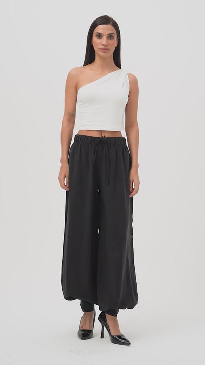 Kadın Siyah Renk s5-1 Baggy Fit Viskon Kumaş Rahat Kesim Yürüyüş Pantolonu