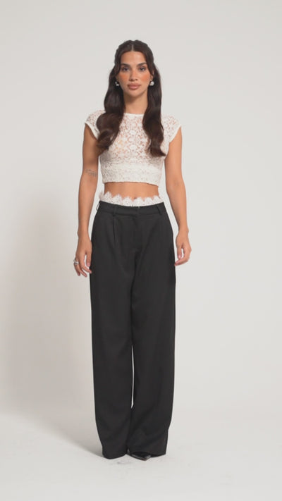 Kadın Siyah Renk w5-1 Palazzo Fit Kemeri Dantel Detaylı Tasarım Pantolon