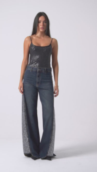Женские джинсы T.Jeans, цвет 2w49, блестящий, с отделкой из камня, с широкими штанинами, дизайн деним