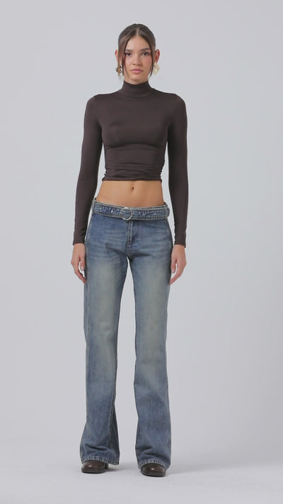 Kadın T.Kot Rengi 4w5-32 Flare Fit Midrise Orta Bel Viskon Kumaş Kemer Detaylı Özel Tasarım Denim Jean