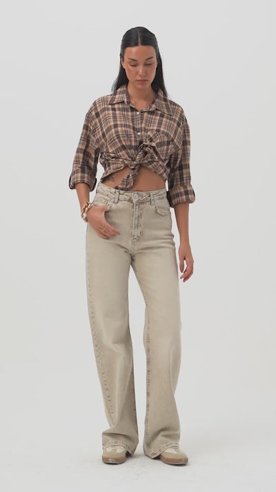 Kadın Taş Renk 4s6-76 Straight Fit Yüksek Bel Komfort Kumaş Denim Jean
